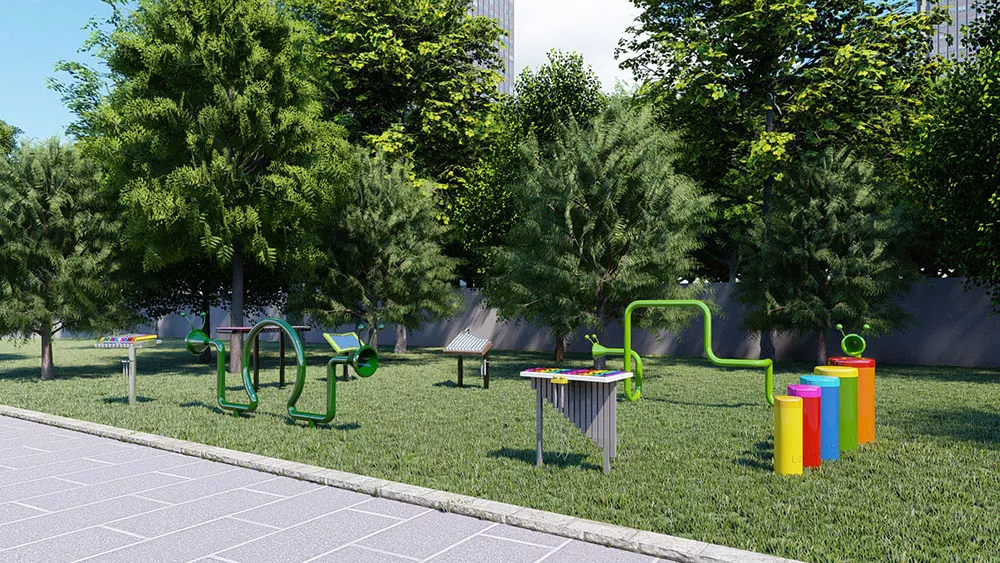 Jednoduchá barva kávy melodie venkovního hudebního parku vyvolává vzpomínky na hluboký podzim a zvyšuje jakékoli venkovní prostředí po celý rok. Velmi vhodný pro parky, hřiště a zahrady povzbuzuje lidi všech věkových skupin a schopností prozkoumat hudbu. Za účelem dosažení harmonického souboru poskytuje bezproblémová kombinace melodie a rytmických nástrojů duet, který přidává melodické kouzlo do jakéhokoli prostředí.