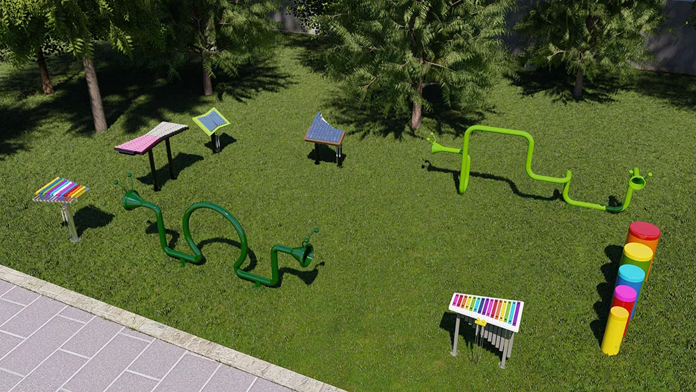 Melody Outdoor Musical Park Instrument je kompaktní a elegantní venkovní kovový telefon, který přitahuje posluchače svým jasným a dlouhodobým tónem. Má devět eloxovaných hliníkových tónů, naladěných na pentatonickou stupnici v C major, což vyzařuje příjemný třpytivý zvuk v rozsahu střední třídy/soprán. Jeho odolný rám a rezonátor jsou vyrobeny z robustních vysoce kvalitních galvanizovaných trubek, což zajišťuje dlouhou životnost a trvanlivost.
